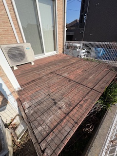 | 施工内容 | 屋根外壁クリアー塗装・既存ウッドデッキ撤去・新規人工木ウッドデッキ設置・ポスト交換 基礎コンクリート左官工事 |